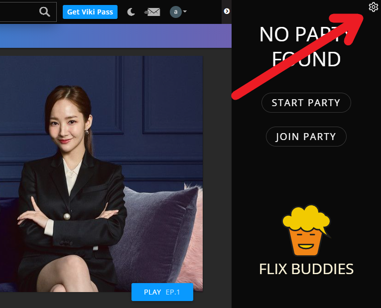 You can immediately access free functionalities settings by clicking on the settings toggle icon at the top right corner of the FLIX BUDDIES panel, as indicated in the image below.